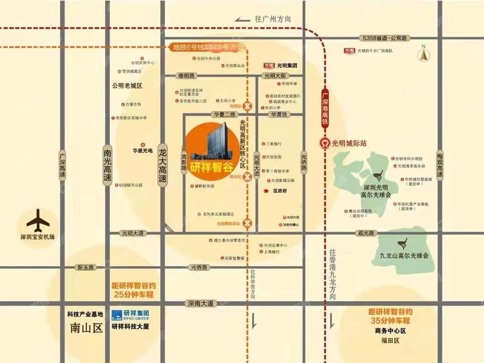 出行路線--高鐵站:離廣深港高鐵(光明城站)約3km,地鐵:到地鐵6號(hào)線約