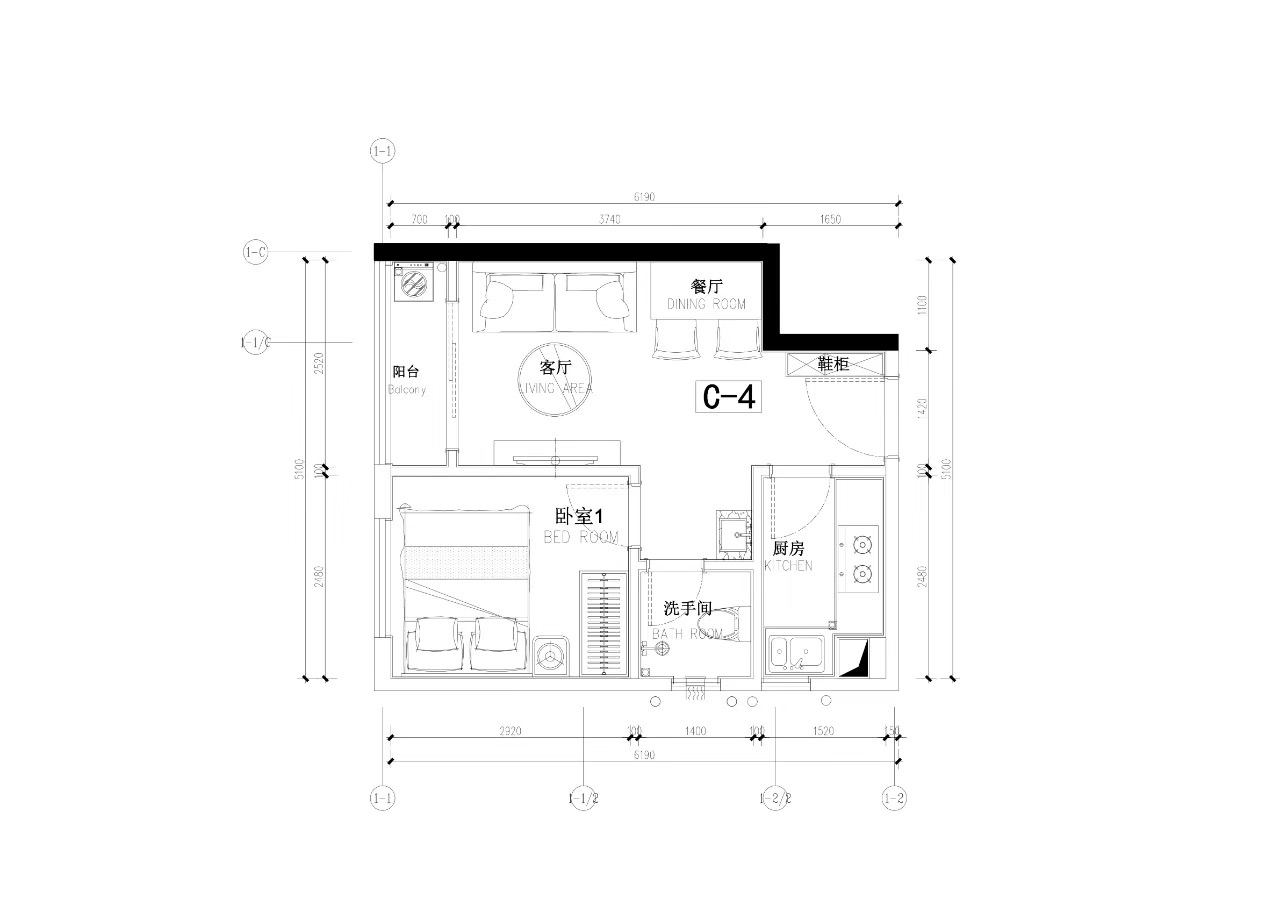 45-49㎡ 1房2廳1衛