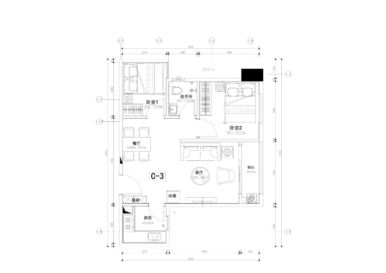 65-81㎡ 2房2廳1衛