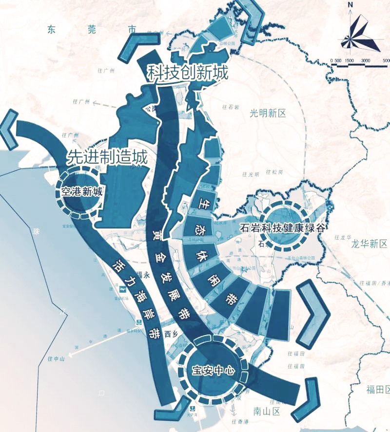 粵港澳灣區核心樞紐+大空港一級輻射區+光明科學城一級輻射區