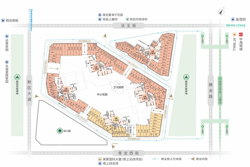 項目緊鄰街心公園、市政公園,四周環(huán)布交通干道,與周邊龍華文體中心、簡上體育綜合體等“四館一城”共同打造沉浸式步行街區(qū); 項目9面商鋪全臨街,擁有9個轉角絕佳鋪位;北面與未央花園商業(yè)街形成對街,南面與萊蒙寫字樓底商形成對街,且自身內部2條對街,4條對街打造一站式消費體驗;具有昭示性的外立面帶來穩(wěn)定的步行人流,刺激臨街商鋪消費力;
